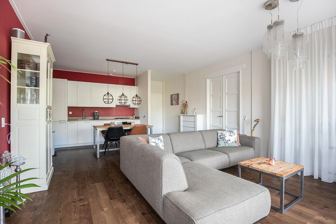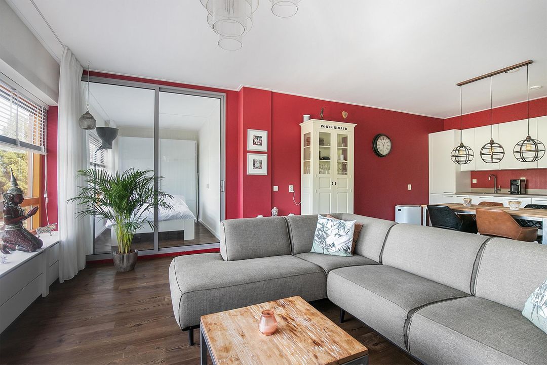 Wat direct opvalt bij het betreden van de woonkamer zijn de vele raampartijen die de living van een prachtig uitzicht en heel veel licht voorziet. Daarnaast is de woonkamer ruim van opzet waardoor u meer dan voldoende plaats heeft voor zowel een ruime zithoek als eethoek. De wanden zijn afgewerkt met strak vliesbehang in een combinatie van een witte met rode afwerking. Het plafond is strak gestukt en heeft een witte afwerking met sierlijsten.  Via de woonkamer heeft u toegang tot de 2e slaapkamer.
