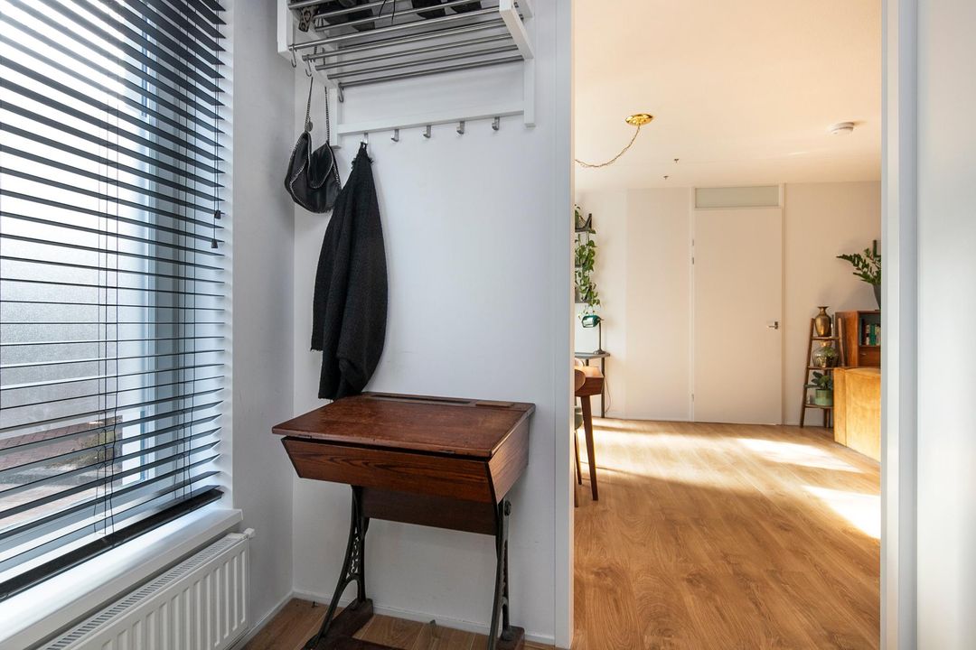 Via de voordeur betreedt u de ontvangsthal met toegang tot de meterkast, cv-kast (Intergas 2008) en de woonkamer. De nette lichteiken laminaatvloer is vanuit hier doorgelegd over het gehele appartement m.u.v. de badkamer. Dit geldt ook voor de strak witte afwerking op zowel het plafond als aan de wanden.