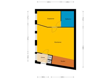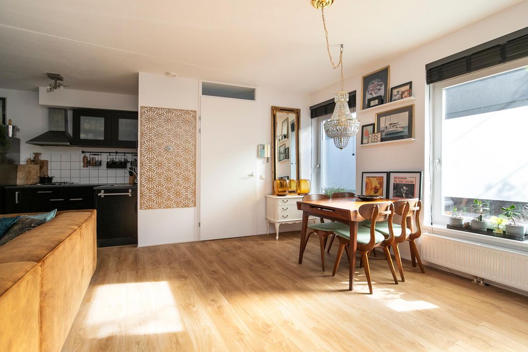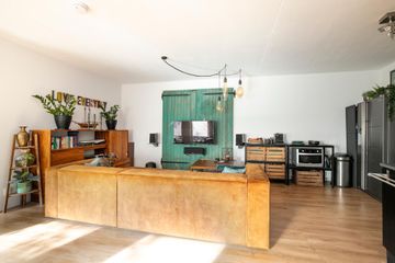 De woonkamer is zeer ruim van opzet waardoor u gemakkelijk een zithoek kunt creëren met een aparte eethoek. Daarnaast wordt de kamer prachtig belicht door de 3 zeer royale draaikiepramen. De woonkamer biedt tevens ruimte voor de open keuken en u heeft via de woonkamer toegang tot de badkamer en de slaapkamer.