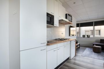 Starters opgelet! Dit leuke en instapklare appartement wilt u niet aan u voorbij laten gaan! Het appartement is door de jaren heen altijd zorgvuldig onderhouden en dat is terug te zien in de strakke afwerking en de moderne badkamer. Daarnaast wordt de woonkamer prachtig belicht door de vele, grote, raampartijen. Het is dan wel een 1-kamer appartement, maar door de praktische indeling komen ruimte en een knus gevoel vloeiend samen. Wonen en slapen is gescheiden door een wand met vrije doorloop naar het slaapgedeelte, dat is wel zo fijn! Ideaal is het gezamenlijke dakterras op het complex waar u heerlijk van het mooie weer kunt genieten.