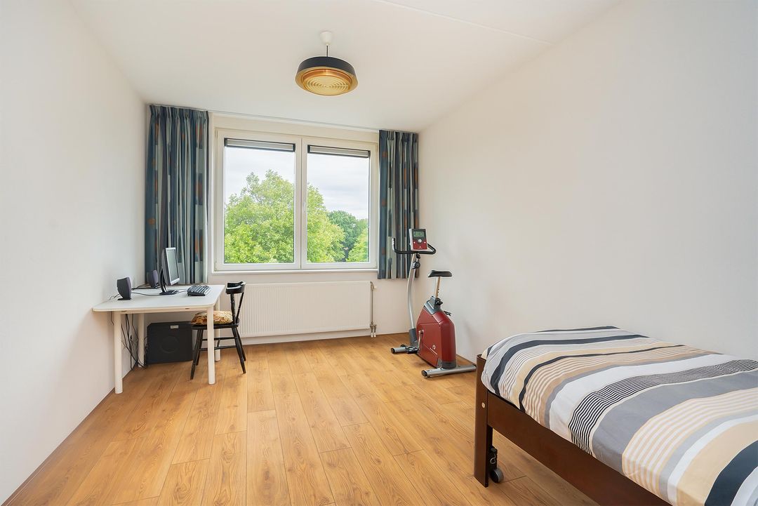De slaapkamers zijn beide gesitueerd aan de zijkant van het complex wat maakt dat deze een waanzinnig uitzicht hebben over de groen- en waterrijke omgeving. Beide slaapkamers zijn zeer ruim en hebben 2 grote raampartijen waarvan 1 draaikiep. Daarnaast hebben de slaapkamers een witte afwerking op zowel de wanden als het plafond, op de vloer ligt dus de eikenhout laminaatvloer.