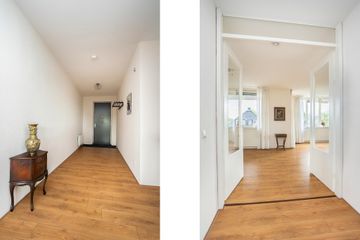 Het appartement is gelegen op de 2e verdieping van het complex. Bij binnenkomst valt direct op dat dit een zeer ruim en breed opgezet appartement is door de royale ontvangsthal. Vanuit hier heeft u toegang tot de 2 slaapkamers, de badkamer, het toilet, een wasruimte en natuurlijk de woonkamer met open keuken. De nette eikenhouten laminaatvloer is vanuit hier doorgelegd over het gehele appartement m.u.v. van de badkamer en het toilet. Ook de strakke witte afwerking op zowel de wanden als het plafond, is terug te vinden door het gehele appartement.