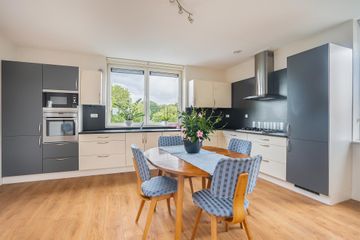 De keuken is het verlengstuk van de woonkamer en biedt de mogelijkheid om een grote eettafel bij te plaatsen waar u heerlijk aan kunt tafelen. De keuken heeft een royale L-opstelling waardoor u aan werk en opbergruimte absoluut geen gebrek heeft! Het kunststof aanrechtblad heeft een rvs-spoelbak en een 4-pits gasfornuis met extra wok-pit. De vele opbergkasten zijn voorzien van witte en antracietkleurige panelen en diverse inbouwapparatuur. Zo zijn er een combi-magnetron, een oven, een koelkast, een vriezer en een vaatwasser aanwezig. Zoals u leest is deze nette keuken van alle gemakken voorzien!