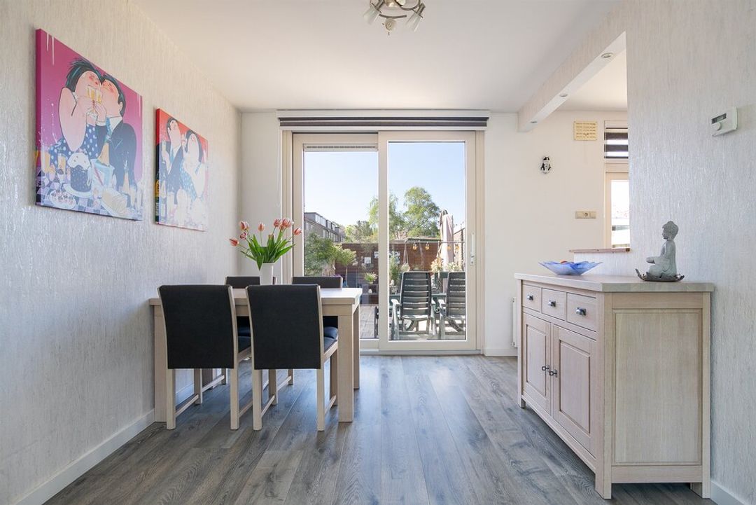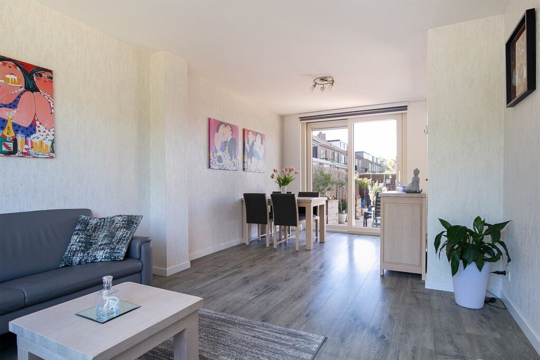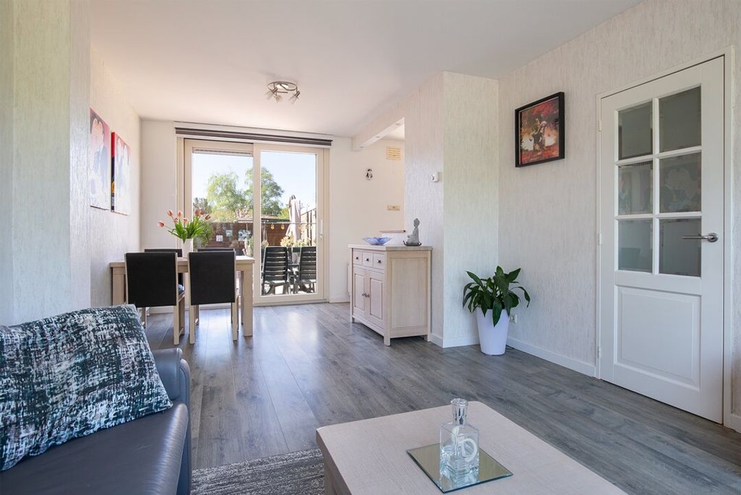 Een bijzonder prettige leefruimte! De woonkamer heeft gevel breed raampartij aan de voorzijde van de woning. Dit maakt in combinatie met de grote schuifpui aan de achterzijde van de woning dat de woonkamer zeer goed belicht wordt. Ook in de woonkamer zijn de wanden netjes afwerkt met licht behang aan de wanden. Vanuit de woonkamer heeft u tevens toegang naar de open keuken.