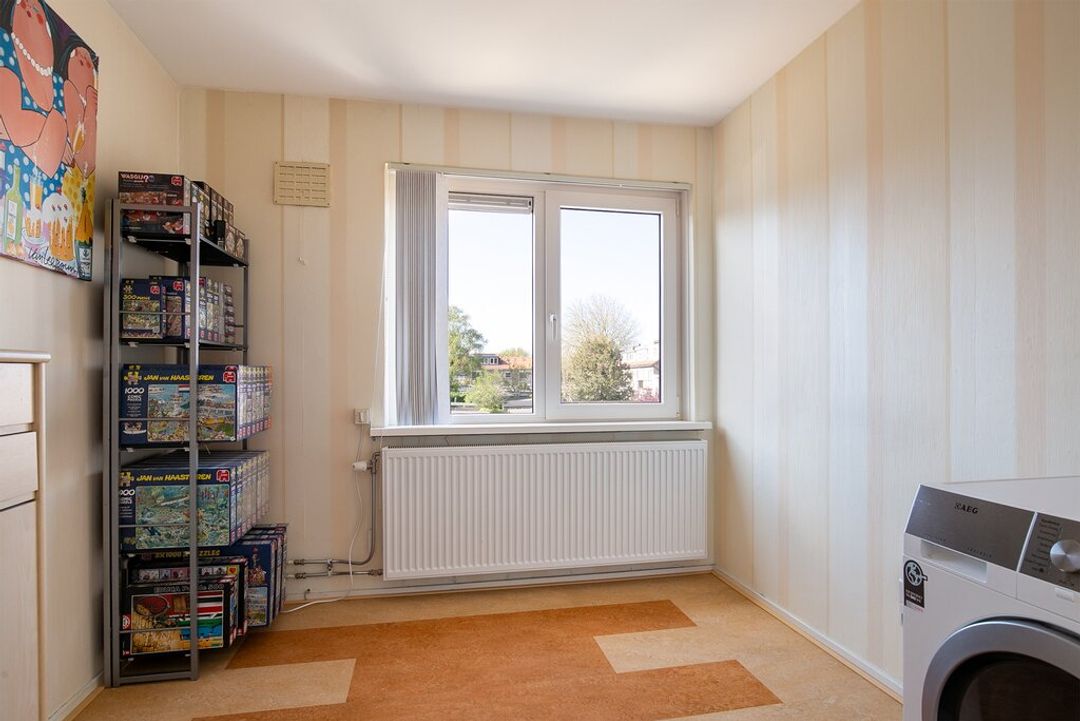 Vanaf de overloop heeft u toegang tot de 3 slaapkamers, de badkamer, bergruimte met wasmachineaansluiting en de vaste trap naar de tweede verdieping. De vloer op deze verdieping is volledig bekleed met klik marmoleum m.u.v. de badkamer. Ook de wanden op deze verdieping zijn volledig behangen met lichtkleurig behang.