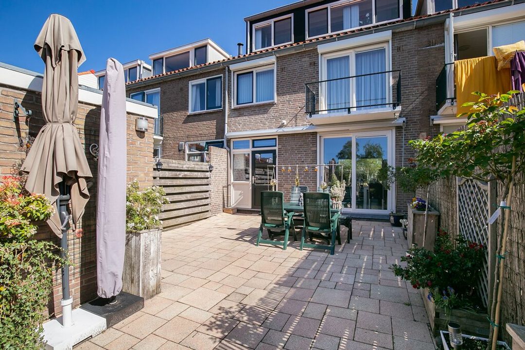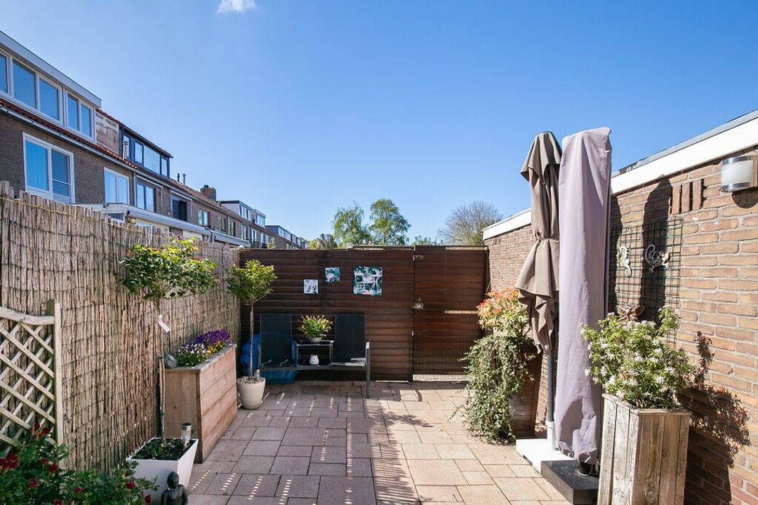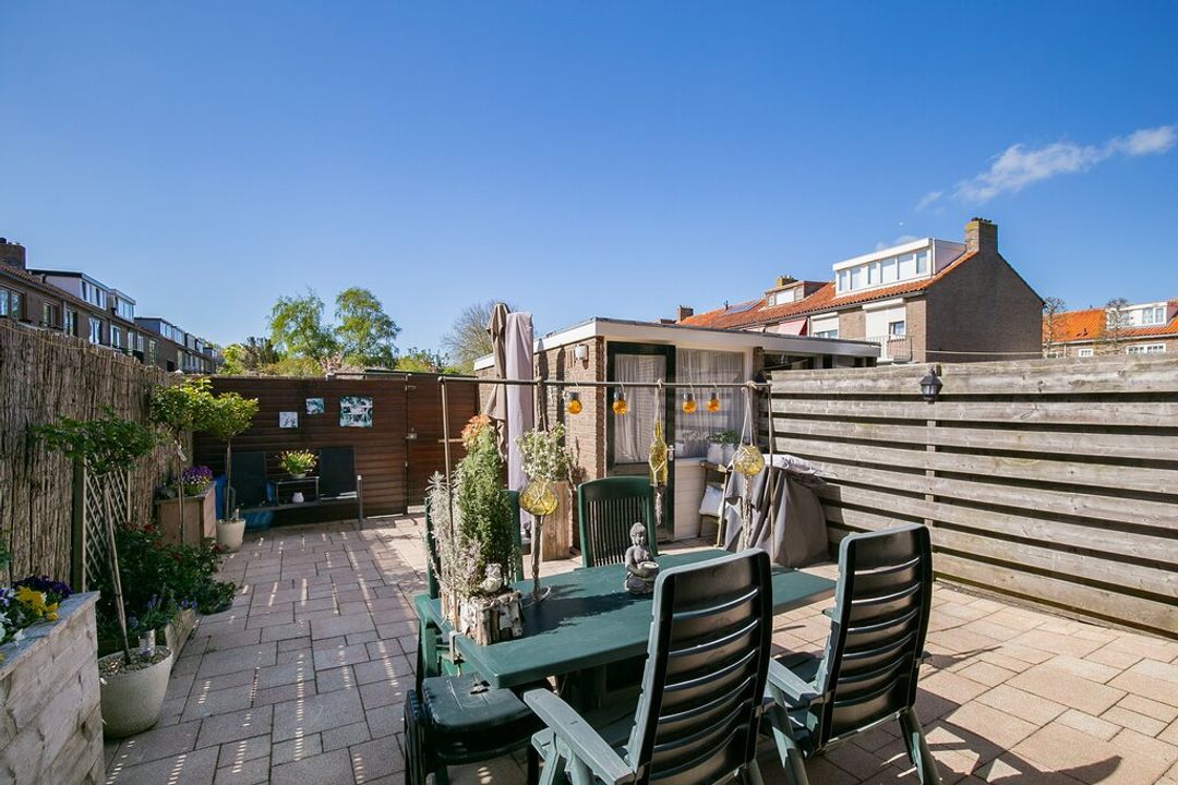 Hier is het goed vertoeven! De tuin is maar liefst 49.9m2 groot en gelegen op het zonnige zuiden. De tuin is te betreden middels de woonkamer, de keuken en achterom. Daarnaast heeft het een handmatige zonnewering aan de gevel en is de tuin zeer onderhoudsvriendelijk doordat het volledig bestraat is. Tevens is de stenen berging ( 7m2) voorzien van elektra.