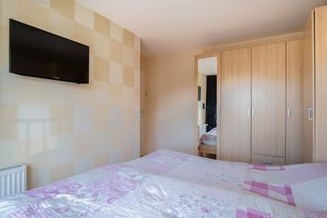 De eerste slaapkamer heeft een schuifpui naar een heerlijk balkon(2 m2) op het zuiden en heeft een handmatig te bedienen rolluik. De tweede slaapkamer is gevestigd aan de voorzijde van de woning en is hierdoor ruim van opzet. Daarnaast heeft de kamer een breed raampartij met rolluik, waardoor deze een erg prettige lichtinval heeft. De 3e slaapkamer heeft een draaikiepraam incl. elektrisch rolluik.