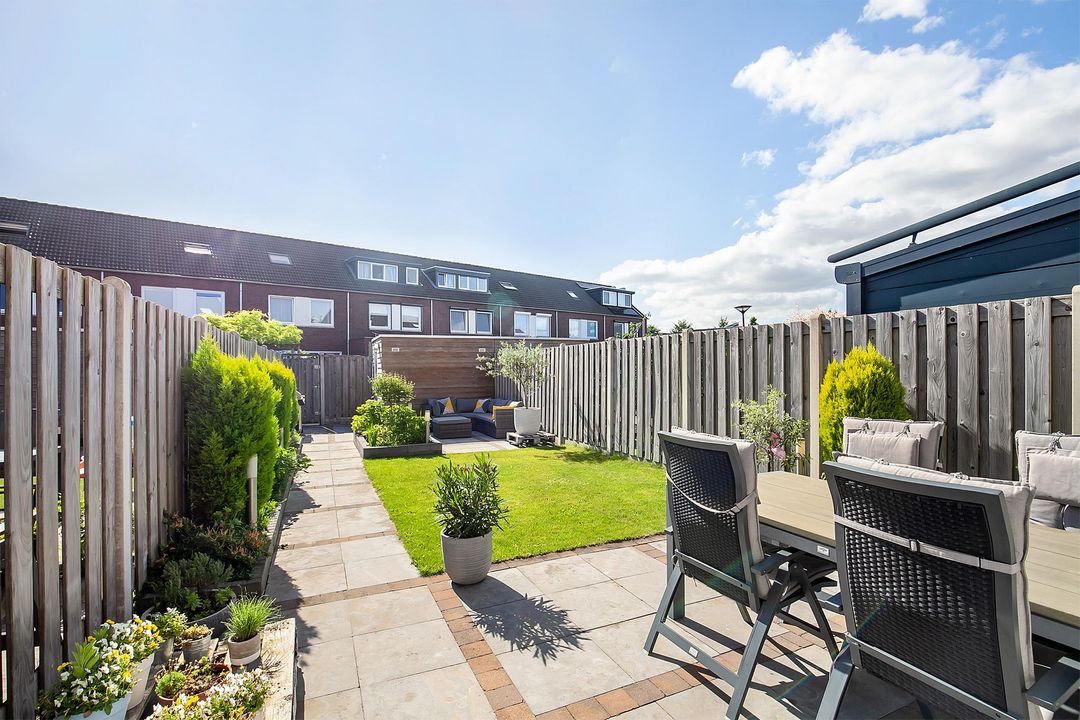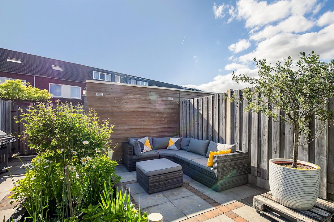 De tuin is ook echt helemaal top! Gelegen op het zonnige westen(heerlijke middag en avond zon!), maar liefst 16 meter diep, 2 ruim opgezette terrassen, een berging(met elektra) van 7m2 en een achterom! Kortom: hier is het meer dan heerlijk vertoeven! Daarnaast is er zowel een elektrisch zonnescherm als een vorstvrije buitenkraan, zijn er meerdere borders met zowel hoge als lage beplanting, is er een mooi stuik gras en is er een houtenschutting rondom.