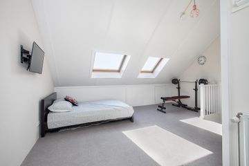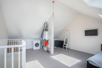 De open trap komt uit op de zolder met de aansluiting voor de wasmachine, wasdroger, CV-ketel (Intergas). De zolder is zo ruim, dat je middels een paar aanpassingen er eenvoudig een ruime vierde slaapkamer kunt realiseren. De zolder heeft daarnaast 2 grote dakramen, een radiator en er zijn knieschotten aanwezig, erg handig voor bergruimte!